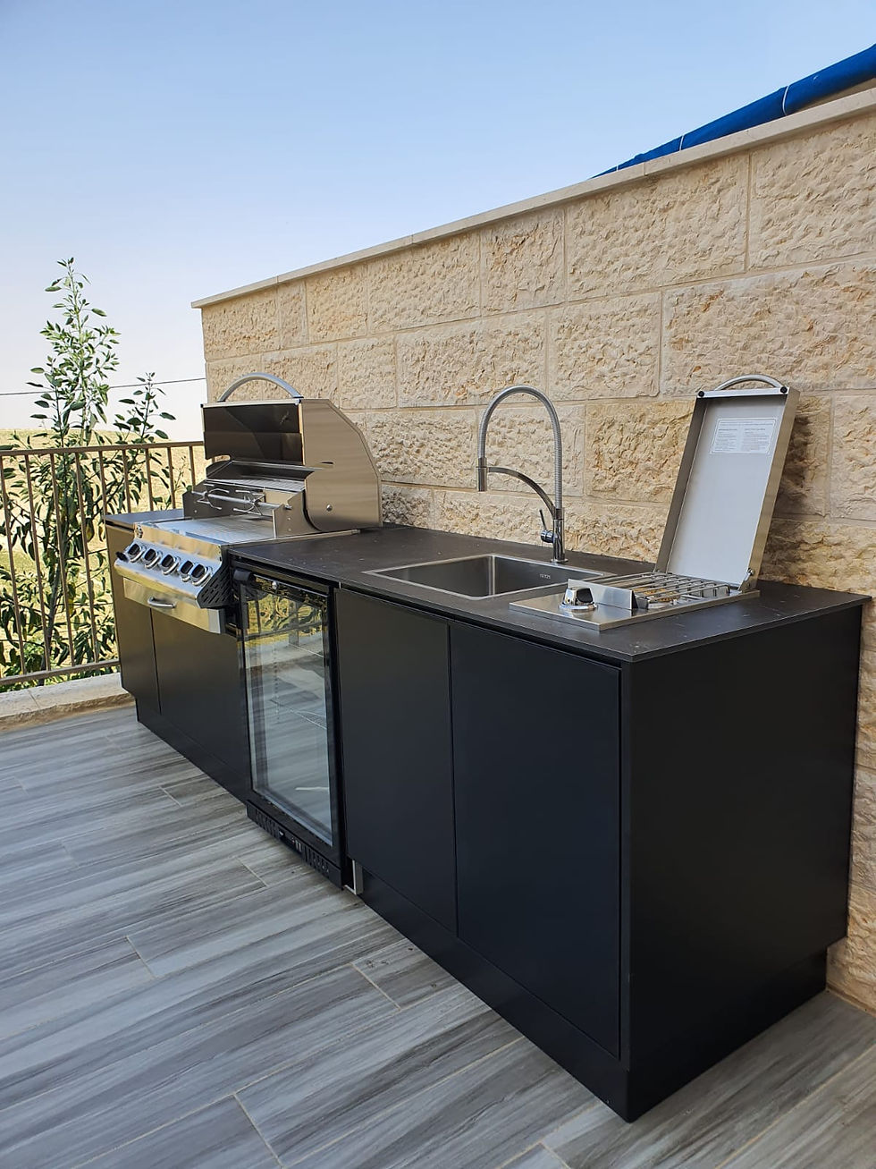 המשטחים העמידים במים ובכל מזג אוויר, יחד עם הארונות התחתונים בעיצוב יוקרתי עם טריקה שקטה , מעניקים לכם תחושת יוקרה גם בעת בישול וגם בעת אחסון הכלים והציוד.
